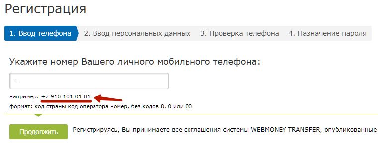 После перехода первым делом от Вас потребуется ввести номер Вашего мобильного телефона. Пример ввода есть сразу под полем, где следует указывать номер.
