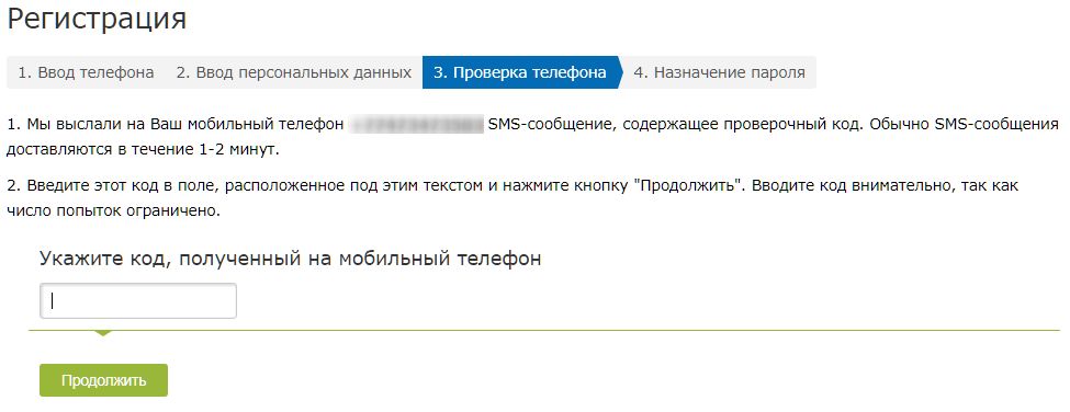 Далее на указанный Вами телефон будет отправлено сообщения с кодом для подтверждения.