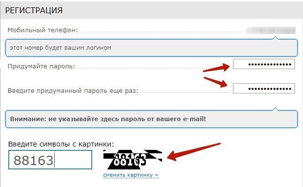 После этого останется только придумать пароль и ввести символы с картинки.
