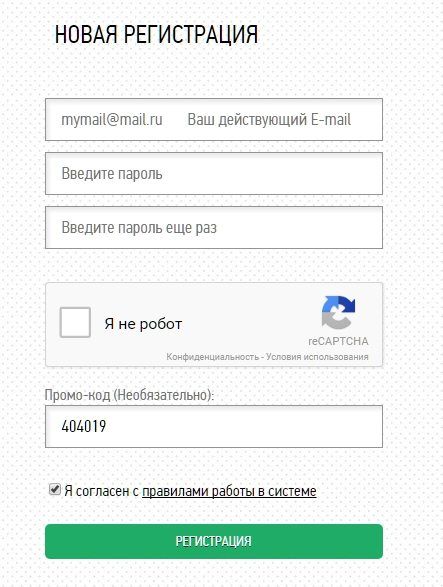 Кликнув по ней Вы перейдете непосредственно на страницу с формой для регистрации. Здесь потребуется ввести действующий e-mail, придумать пароль и пройти простую проверку на робота.