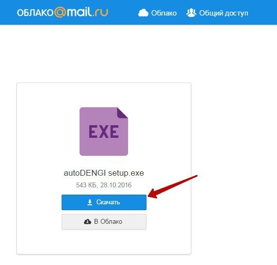 По ссылке попадаем на облако майла и кликаем по кнопке Скачать.