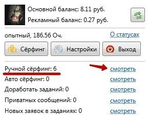 В данный момент мне доступно 6 сайтов для ручного серфинга, а начать просмотр можно кликнув по кнопке «смотреть».