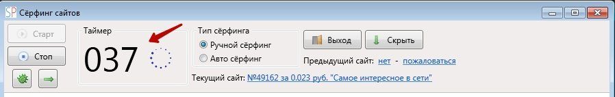 После нажатия откроется окно «Сёрфинг сайтов» и таймер начнет работать.