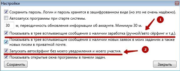 - Можно отключить или наоборот включить автоматический запуск автосерфинга в фоновом режиме.