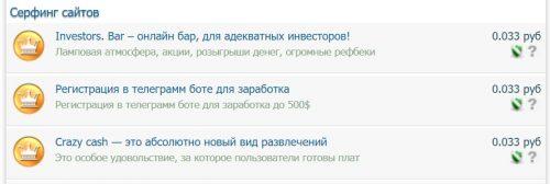 Рассматривать всё мы не будем. Простые виды заработка здесь похожи друг на друга. Так что для начала заострим внимание на серфинге.