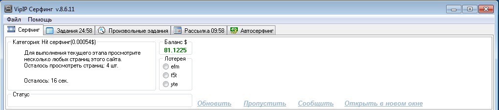 В данном разделе Вы можете скачать основную программу для заработка от VipIP. В ней можно просматривать сайты в серфинге, выполнять кликовые задания (автоматически получать за них вознаграждения), выполнять произвольные задания и получать оплачиваемые письма.