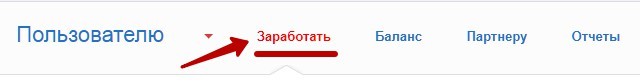 После этого Вы сможете попасть в свой личный кабинет и начать работать с сайтом. Например можно попробовать себя в качестве пользователя и перейти в раздел «Заработать».