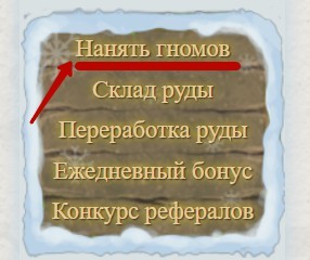 После окончания регистрации Вы сможете осуществить вход в свой аккаунт и первым делом следует купить себе первого работника в разделе «Нанять гномов».
