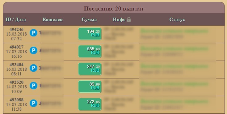 Кроме этого на сайте можно найти открытую статистику последних выплат (всё более чем прозрачно). Посмотреть данную страничку можно даже не проходя регистрацию.