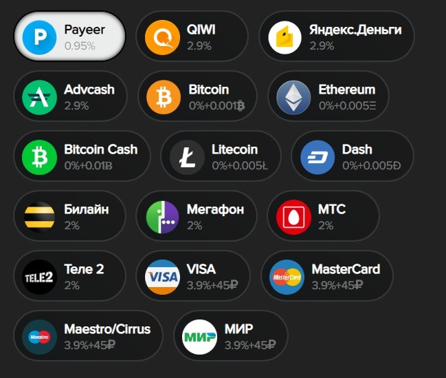 Как всегда перед тем как начать детально рассматривать подготовленные мною проекты я рекомендую Вам позаботиться о том куда получать деньги. Для этого нужно завести хотя бы один электронный кошелек, для этих целей отлично подойдет Payeer (в большинстве игр вывод денег на него производится с минимальными комиссиями ~ 1%). Кроме прочего прямиком из Payeer деньги можно моментально перевести на другие популярные платежные системы, банковские карты и мобильный телефон. На картинке ниже можно увидеть весь перечень направлений вывода.