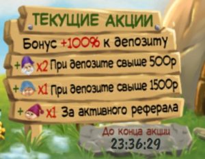 В игровом городе постоянно проходят выгодные акции на пополнение баланса, конкурсы, выдаются различные бонусы.