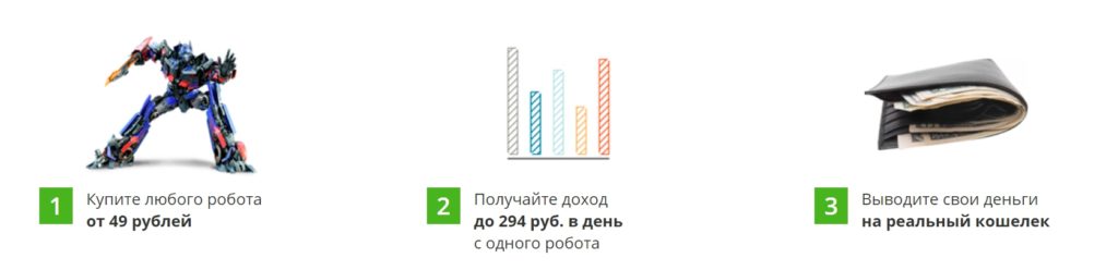 - Роботы приносят энергию, которую можно обменять на реальные деньги.