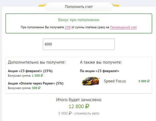 Как видно на скриншоте пополнив баланс на 6 000 рублей я получу: