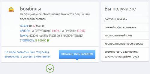 Кстати, кроме пути развития таксистом доступен и другой вариант — открытие собственной фирмы.