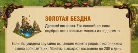 Начать получать прибыль можно без вложений ведь на проекте есть возможность получения ежедневного бонуса от 10 до 100 монет + стартовая постройка Золотая Бездна, которая дает до 200 монет в день.
