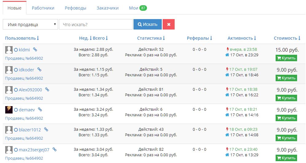 К слову биржа рефералов на очень популярном буксе SOCPUBLIC выглядит примерно так.