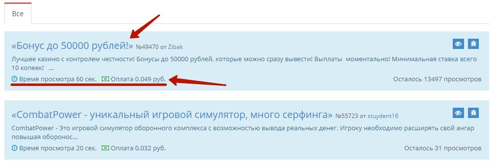 - Выполнение заданий — выбираете заинтересовавшее задание, читаете его описание и выполняете по пунктам. После этого присылаете рекламодателю отчет о выполнении и получаете оплату после проверки (обычно занимает несколько часов). Поручения доступны самые разные (активность в социальных сетях, клики по рекламе, регистрации и т.п.) и вознаграждение напрямую зависит от сложности задания.
