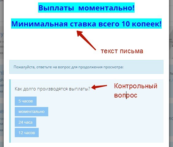 - Оплачиваемые письма — читаете письмо и переходите по ссылке в нем (возможно придется ответить на простой контрольный вопрос). После перехода начинает работать таймер (15-60 секунд) и по истечению времени Вы получаете оплату на свой баланс.