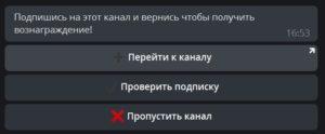 По первой ссылке переходим на telegram канал рекламодателя, подписываемся, возвращаемся и нажимаем «Проверить подписку».
